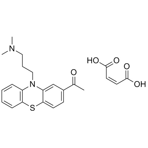 Acepromazine Maleate is a fully characterized chemical compound used as a reference standard of API Acepromazine Maleate. The standard offered is compliant with regulatory guidelines. Acepromazine Maleate is used for analytical method development, method validation (AMV), and Quality Controlled (QC) applications during synthesis and formulation stages of drug development and serves as a reference standard for traceability against pharmacopeial standards (USP or EP). Axios Research products are intended for analytical purposes only and are not for human use. CAS - 3598-37-6