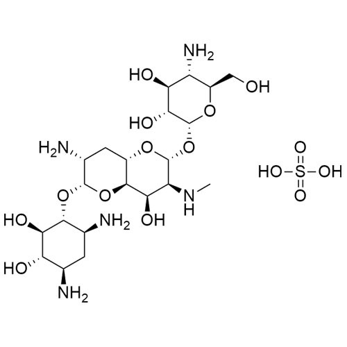O-4-amino-4-deoxy-α-D-glucopyranosyl-(1→8)-O-(8R)-2-amino-2,3,7-trideoxy-7-(methylamino)-D-glycero-α-D-allo-octodialdo-1,5:8,4-dipyranosyl-(1→4)-2-deoxy-D-Streptamine, sulfate