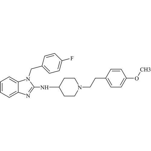 Astemizole is a fully characterized chemical compound used as a reference standard of API Astemizole. The standard offered is compliant with regulatory guidelines. Astemizole is used for analytical method development, method validation (AMV), and Quality Controlled (QC) applications during synthesis and formulation stages of drug development and serves as a reference standard for traceability against pharmacopeial standards (USP or EP). Axios Research products are intended for analytical purposes only and are not for human use. CAS - 68844-77-9