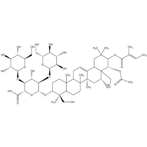 Escin (Aescin) is a fully characterized chemical compound used as a reference standard of API Escin (Aescin). The standard offered is compliant with regulatory guidelines. Escin (Aescin) is used for analytical method development, method validation (AMV), and Quality Controlled (QC) applications during synthesis and formulation stages of drug development and serves as a reference standard for traceability against pharmacopeial standards (USP or EP). Axios Research products are intended for analytical purposes only and are not for human use. CAS - 6805-41-0