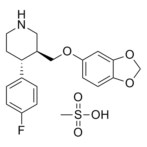 Paroxetine Mesylate is a fully characterized chemical compound used as a reference standard of API Paroxetine Mesylate. The standard offered is compliant with regulatory guidelines. Paroxetine Mesylate is used for analytical method development, method validation (AMV), and Quality Controlled (QC) applications during synthesis and formulation stages of drug development and serves as a reference standard for traceability against pharmacopeial standards (USP or EP). Axios Research products are intended for analytical purposes only and are not for human use. CAS - 217797-14-3