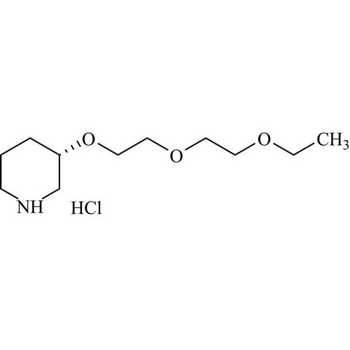 (S)-3-[2-(2-ethoxyethoxy)ethoxy] Piperidine HCl is a fully characterized chemical compound used as a reference standard of API (S)-3-[2-(2-ethoxyethoxy)ethoxy] Piperidine HCl. The standard offered is compliant with regulatory guidelines. (S)-3-[2-(2-ethoxyethoxy)ethoxy] Piperidine HCl is used for analytical method development, method validation (AMV), and Quality Controlled (QC) applications during synthesis and formulation stages of drug development and serves as a reference standard for traceability against pharmacopeial standards (USP or EP). Axios Research products are intended for analytical purposes only and are not for human use. CAS - NA